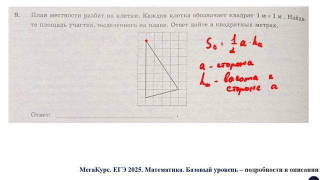 Задание 9. План местности разбит на клетки. Каждая клетка обозначает квадрат 1 м * 1 м. Найдите площадь участка, выделенного на плане. Ответ дайте в квадратных метрах. Курс по всем заданиям 1 - 21 базового уровня ЕГЭ по математике: https://stepik.org/a/174709 Группа ВК: https://vk.com/secretroom2023 #егэ #математика #база
