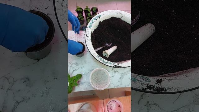 Перевалка черенкованной петунии Тайдел Черри и Шок Вэйв Деним.