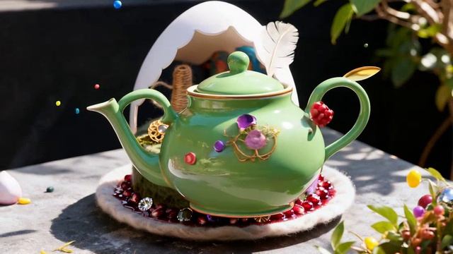 dreamina-2026-03-07-8612-pie in the sky, teapot, spoons are flyin...