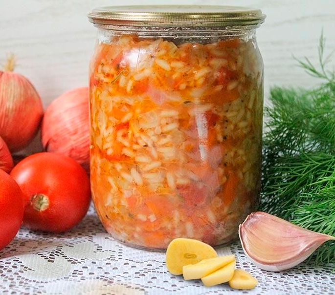 Рис 100 гр Капуста белокочанная 300 гр Помидоры 200 гр Морковь 80 гр Лук репчатый 80 гр Растительное масло 50 мл Уксус 40 мл Соль 2.5 гр Сахар 2.5 гр Чеснок 5 гр