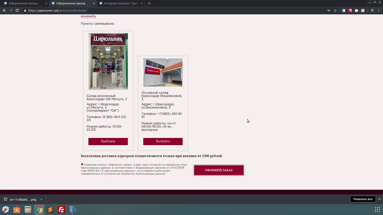 Цирюльник Заказ На странице выбора пункта Самовывоза задваиваются адреса