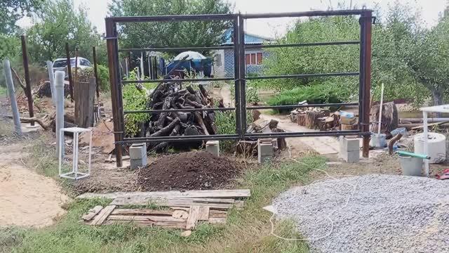 Работы и самоделки . Сварил распашные ворота в рамочке и установил их . Приварил их на петли .
