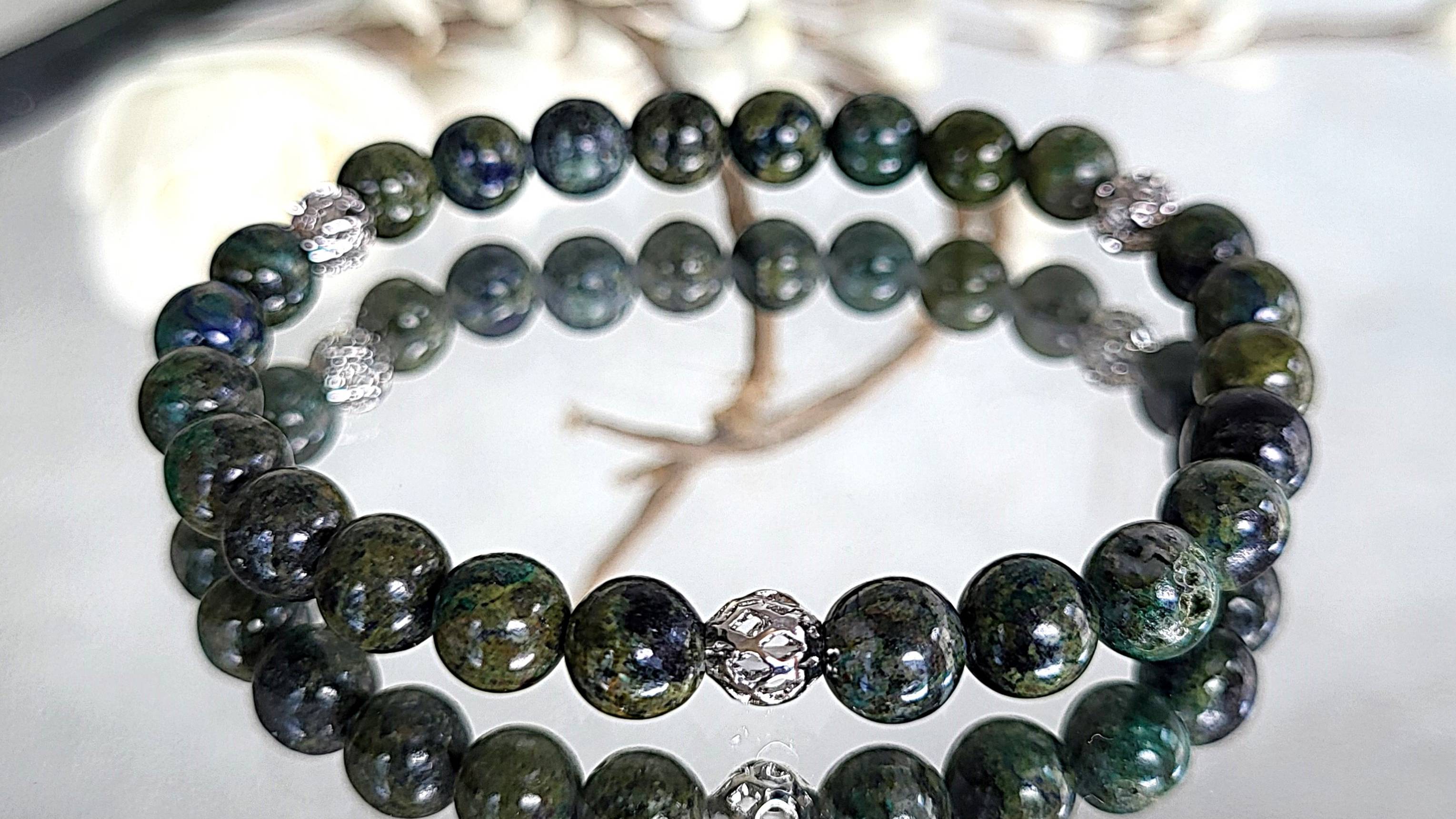 Браслет украшения из натуральных камней. Браслет из азурмалахита с фурнитурой: азурмалахит шарик 7 мм., фурнитура люкс, длина 18 см. на резинке (на запястье 15-17 см.). Возможно изготовление по вашим размерам.