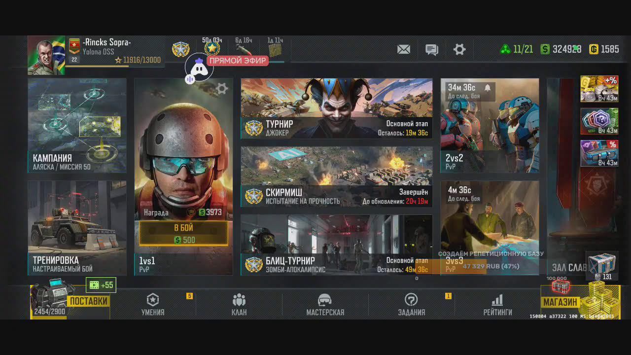 Поддержка автора по ссылке: https://www.donationalerts.com/r/rincks Бланк банк 4375571500040653 телеграм группа для подписчиков https://t.me/art_of_war_3_rincks_sopra Продлить стрим:300 руб Смена фракции:200 руб Тренировка:300 руб 2х2: по совести Покажи кач: миллион рублей Закончить стрим:1000 руб Так же можно заказать челлендж. тоесть дать стримеру задание за определенную сумму. Например: сыграть только авиацией или вообще без неё,ну и так далее. Ссылка на игру: Долго искал настоящую стратежку на телефон, как старкрафт. Наконец нашел Art of War 3! Очень крутая игра! Вот ссылка, качай, тебе понравится: https://redirect.appmetrica.yandex.com/serve/169878688668608468?recruiter_id=1111515909