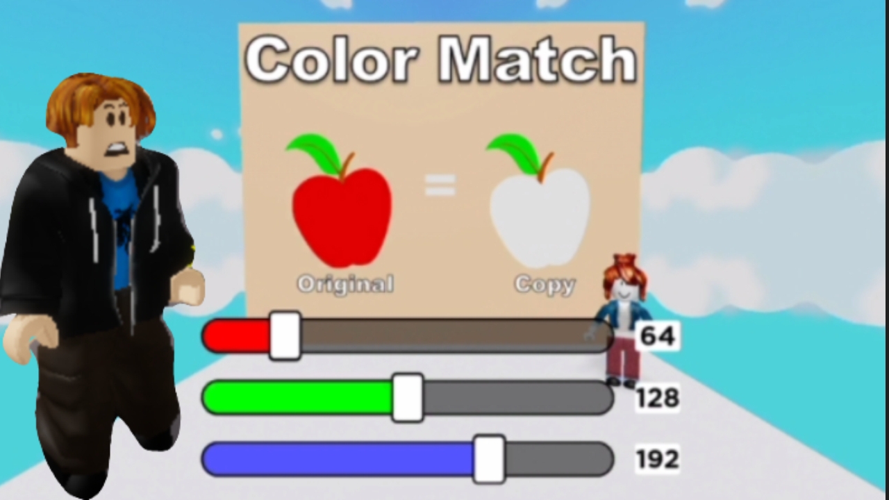 Прохождение обби. Давид делает цвета похожими.