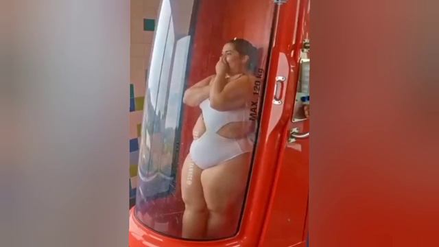 Пухляшка 120 кг в гидротрубе аквапарка.