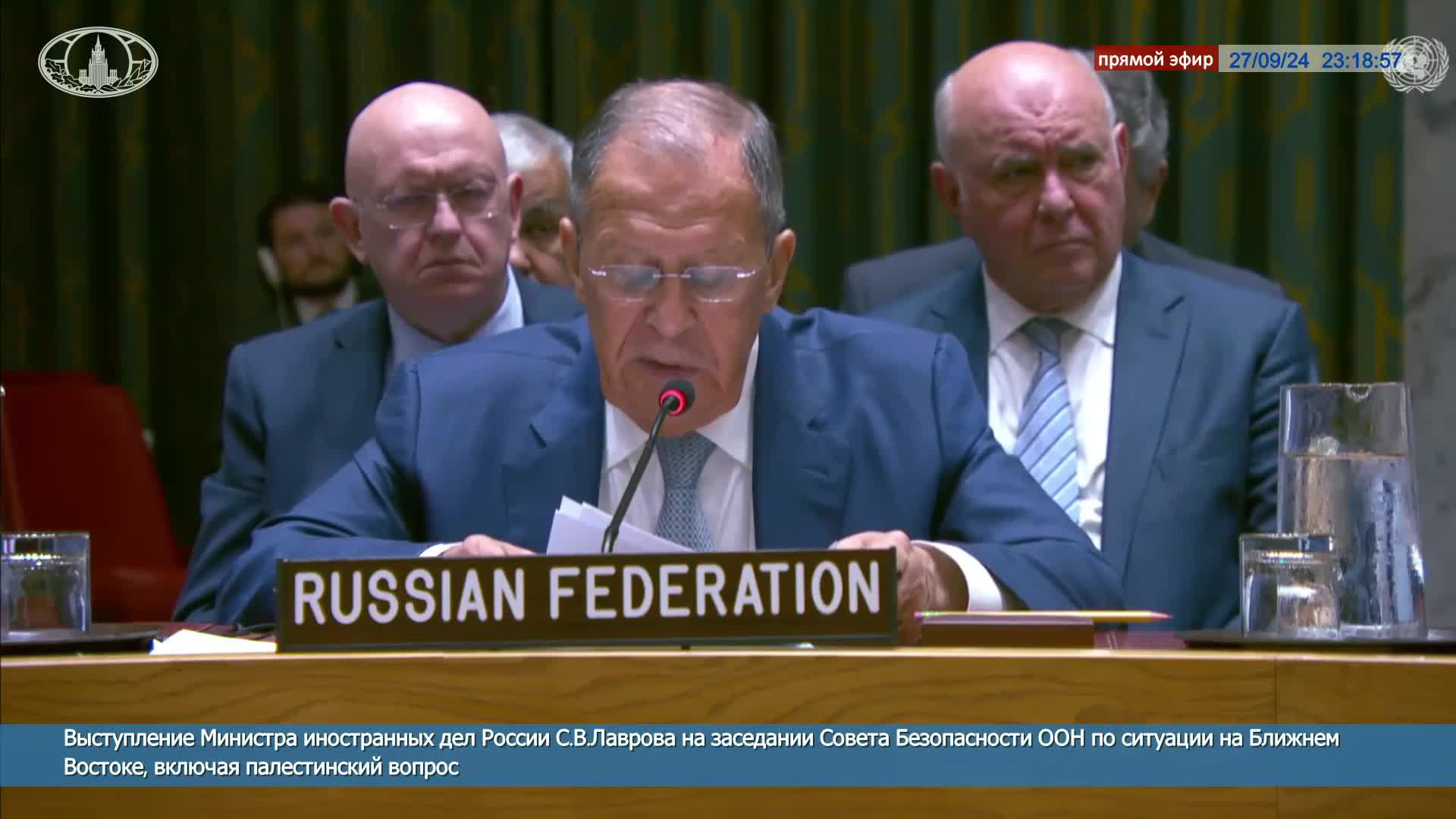 🔴 Выступление С.В.Лаврова в СБ ООН по ситуации на Ближнем Востоке, включая палестинский вопрос
