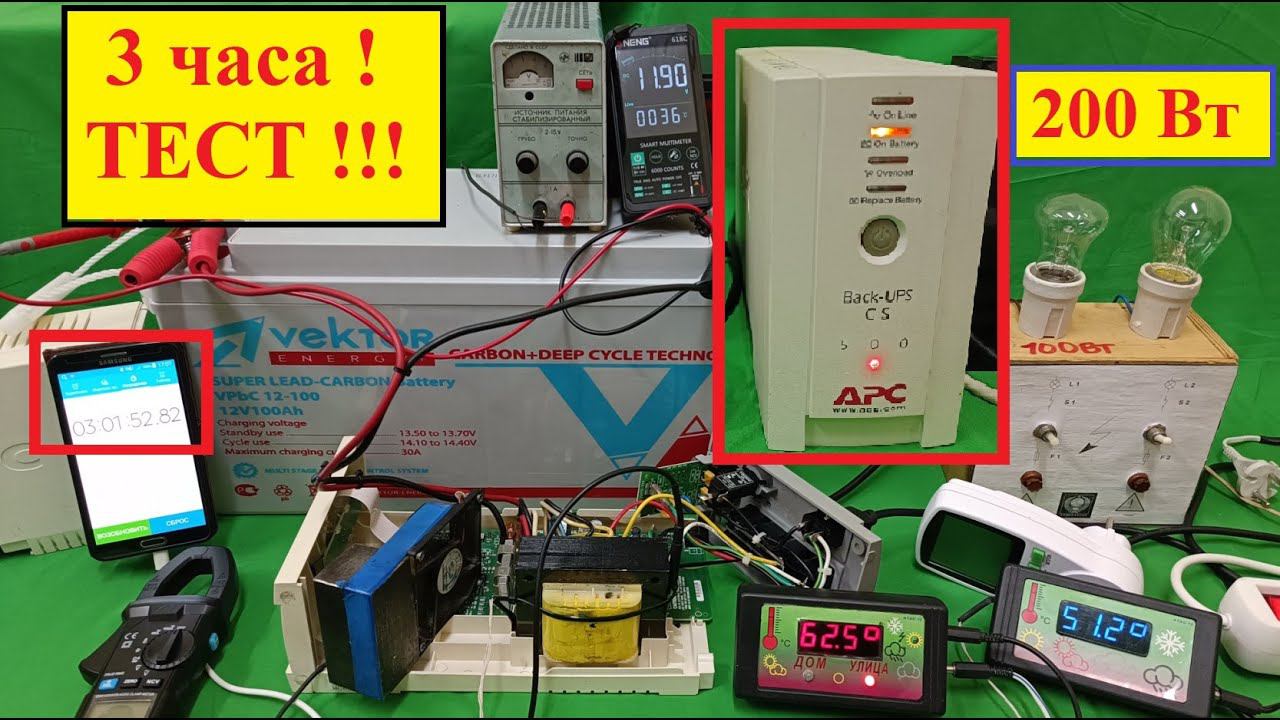 ИБП APC 500 . Крутой Тест. 200Вт ! 3 часа ! Всё Работает ! Залипательное Видео для Умных Людей !