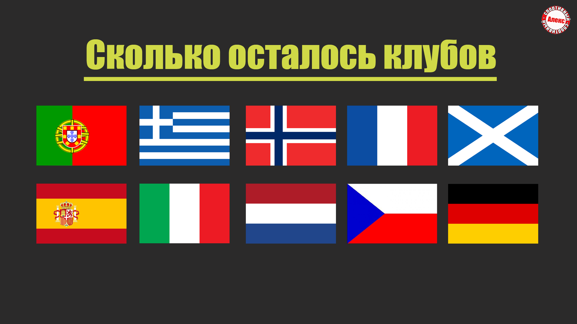 В прошлом выпуске мы узнали, что в трех еврокубковых турнирах осталось 11 стран. Сколько осталось клубов в еврокубках по странам? *** Благодарю всех, кто поддерживает наш канал Яндекс. Деньги - https://yoomoney.ru/to/410016816116658 Donationalerts - https://www.donationalerts.com/r/novostisporta