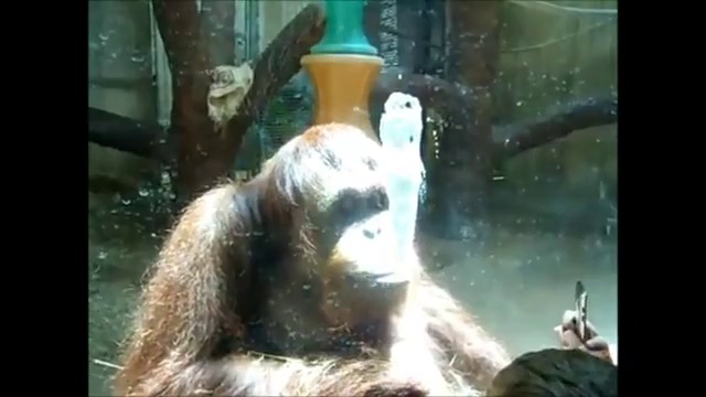 Орангутан, который очень любит плеваться