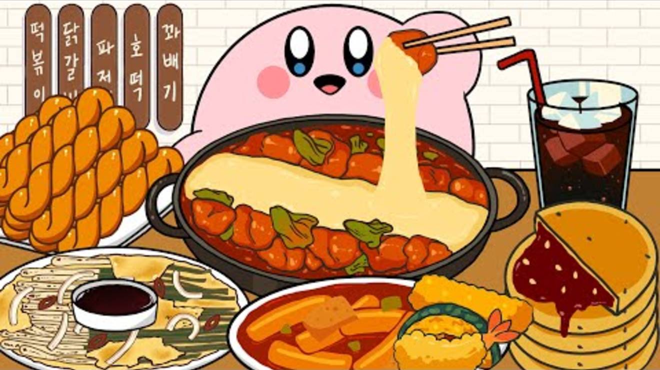 Кирби кушает корейскую еду, мультфильм