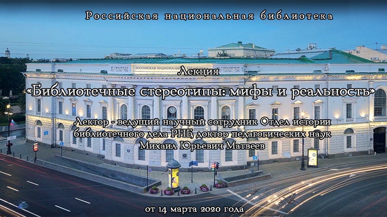 Лекция - «Библиотечные стереотипы: мифы и реальность» Лектор — ведущий научный сотрудник Отдел истории библиотечного дела РНБ, доктор педагогических наук Михаил Юрьевич Матвеев По отснятому материалу от «14» марта 2020 года.