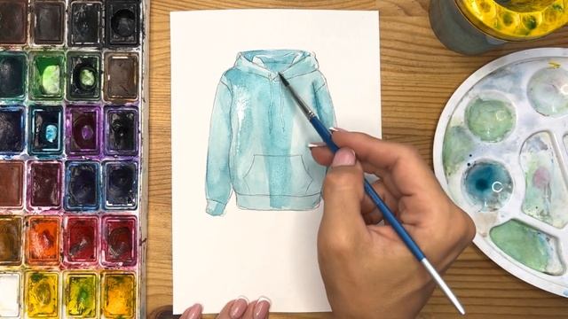 Как нарисовать худи карандашом и акварелью начинающим | Рисунок поэтапно и легко для детей