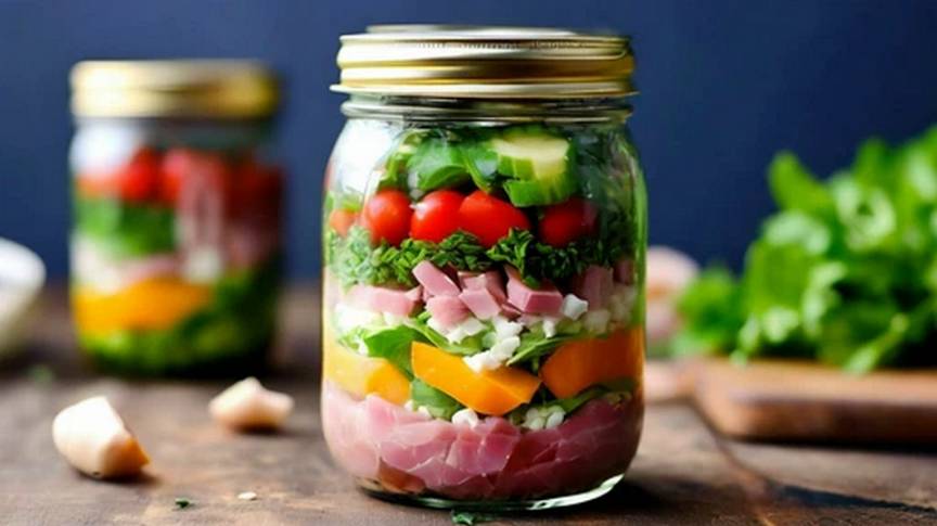 Варено-копченая колбаса с корнишонами и горчицей. Пестрый колбасный салат с луком