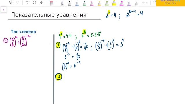 ЕГЭ профильная математика. Задание 6. Типы степеней, подготовка к решению показательных уравнений.