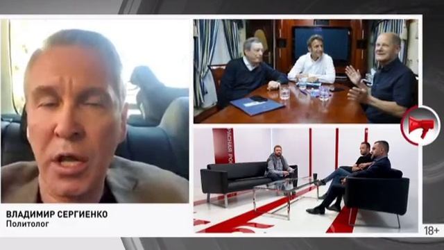 Политолог Владимир Сергиенко в нашем стриме «Прекрасная Россия бу-бу-бу» прокомментировал визит ведущих политиков Европы в Киев: «На наших глазах произошёл раскол внутри НАТО. Европейцы заинтересованы в сохранении собственной экономики. Украина как проект «Русофобия» ударила Россию — вроде бы Россия кровоточит в подбрюшье. Но никто не говорит, что Украина ударила в подбрюшье Евросоюза. Евросоюз экономически сегодня кровоточит, и Зеленский, разговаривая с ЕС, за спиной имеет хорошую жандармскую дубинку в виде США. Разговор с Зеленским — это склонить его к финансированию (то, что очень любит делать Германия), а не к затяжной войне, которая невыгодна Евросоюзу».