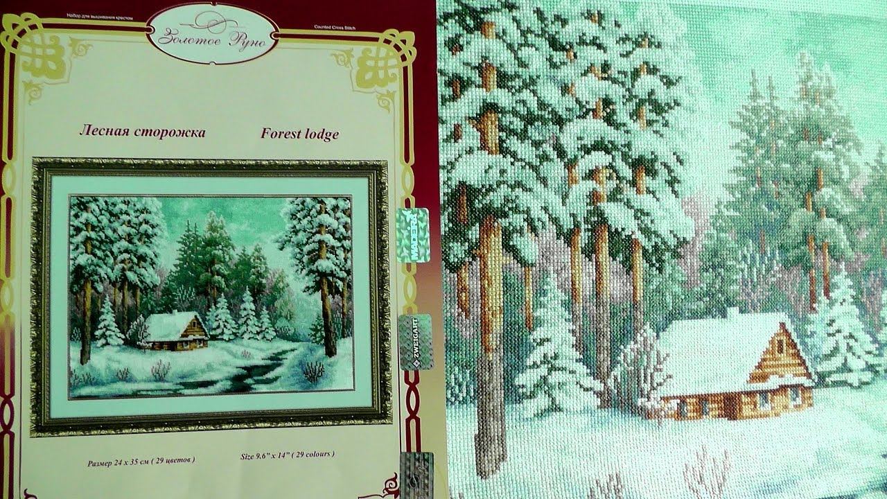 Обзор набора для вышивания крестом Золотое руно «Лесная сторожка» и готовая работа. Вот как надо вышивать крестиком! Раз-два и готово! #рукоделиеплюс