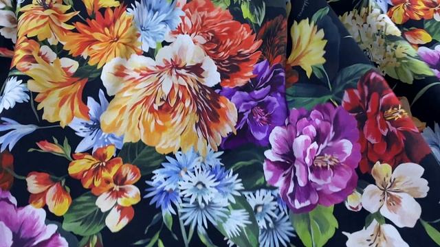 Шёлк чёрного цвета с принтом цветы 46786