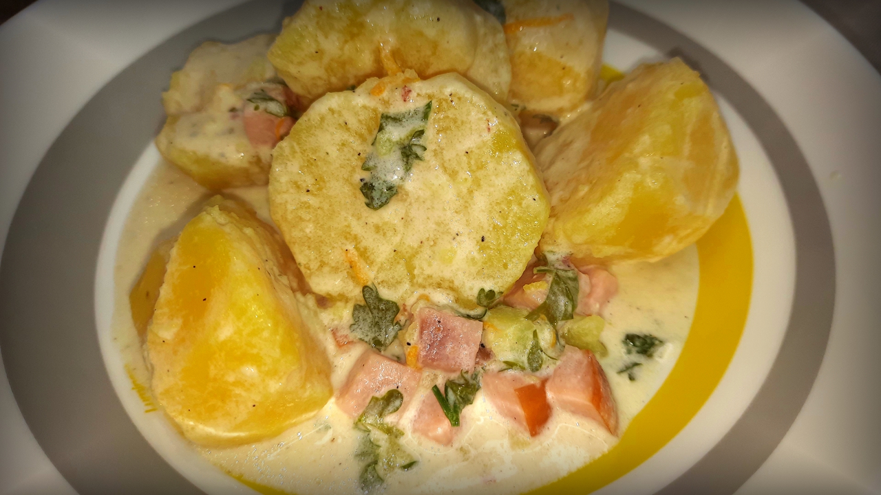 Картофель, тушёный в сливочно-лимонном соусе с ветчиной / Супер гарнир!