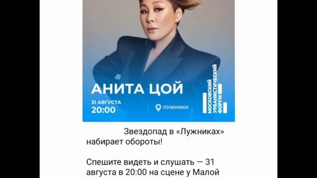 Бесплатный концерт Аниты Цой в Лужниках завтра!