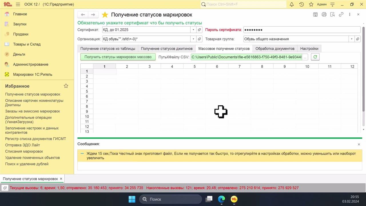Получение статусов маркировок (КиЗов Честный Знак) из табличного документа, все товарные группы