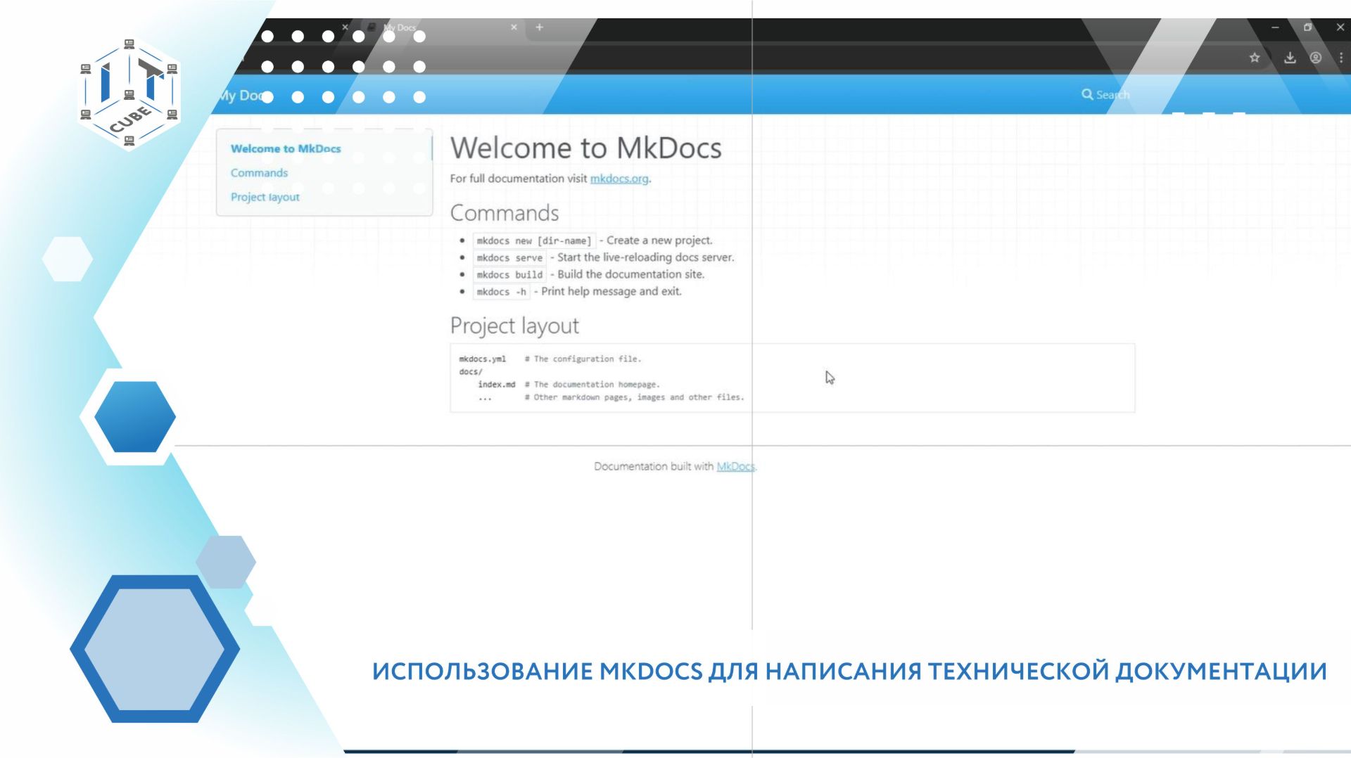 Представляем вашему внимание профориентационный мастер-класс «Введение в дисциплину Программирование” на тему: Использование MkDocs для написания технической документации. В этом видео вместе с педагогом дополнительного образования Сергеем Корляковым вы разберёте: - кто такие технические писатели - что такое ГСС - как установить и работать с MkDocs Кратко изучите ключевые команды, зная которые вы сможете писать как простые шпаргалки, так и целые корпоративные порталы. Центр цифрового образования IT-куб. Хабаровск (ЦТЦО "ТЕХНО-IT-куб")