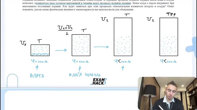 В вертикальном цилиндрическом сосуде под поршнем находится воздух, водяной пар и капли воды - №29132