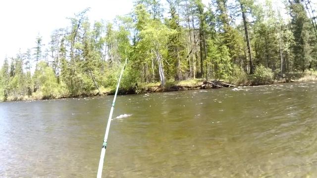В поисках хариуса 2. Часть 13. Приплыли на другую яму. Хариус нас тут ждал.