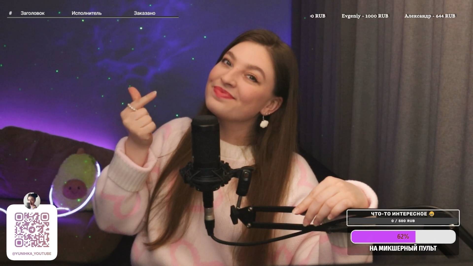 Привет, дорогой зритель! Меня зовут Юля, живу в самом красивом городе Санкт-Петербург, и я очень рада тебя видеть здесь на моем канале) Сегодня я провожу прямую трансляцию и поэтому прошу Тебя поддержать меня ну и конечно же петь песни вместе со мной 💖 Стримы проходят каждый ВТ и ЧТ в 19:30 по мск Возможны и выходные дни, смотри подробнее в группе ТГ 💎 Ссылка на донат ИЛИ если вы хотите увидеть свое сообщение на экране - https://www.donationalerts.com/r/yunihka или https://new.donatepay.ru/@1355734 💎 Если просто хотите поддержать мое творчество номер карты ТБАНК: 2200 7017 8469 2862 🌸 Заказ песни вне очереди 300 р. 🌸 Выучить песню от 1000 р. (на разучивание уходит от 1 до 2х недель в зависимости от сложности материала, если песня мне нравится и походит, если песня мне не подходит - ищем варианты замены) 🌸 Сигна (электронный автограф) с вашим ником 300 р. ЧТО Я МОГУ СПЕТЬ ДЛЯ ТЕБЯ смотри тут 👇 🌟 https://disk.yandex.ru/i/YTq-QLQ9VLuGvA 🌟 https://www.streamersonglist.com/t/yliannohka/songs 💎 Сигна разыгрывается на каждые 50 лайков 💎 Так же сигна разыгрывается на 100 лайков либо песня вне очереди, решает выигравший Хочу сказать огромное СПАСИБО всем донатерам и просто случайным зрителям! Я надеюсь Вам все понравится ❤️ ИЩИТЕ МЕНЯ ЗДЕСЬ: Инстаграм (запрещен в РФ): https://www.instagram.com/yunihka/ (@yunihka) Группа ВК: https://vk.com/yunihka Телеграмм: https://t.me/yunihka_youtube ТВИЧ: https://www.twitch.tv/yliannohka ВК плэй https://live.vkplay.ru/yunihka РУТУБ: https://rutube.ru/channel/7667529/ Бусти: https://boosty.to/yunihka #стрим#караоке#разговоры#живойзвук#вокал#живойвокал#поем#петь#музыка#поемкараоке#петькараоке#cover#music#стрим#прямойэфир#караоке