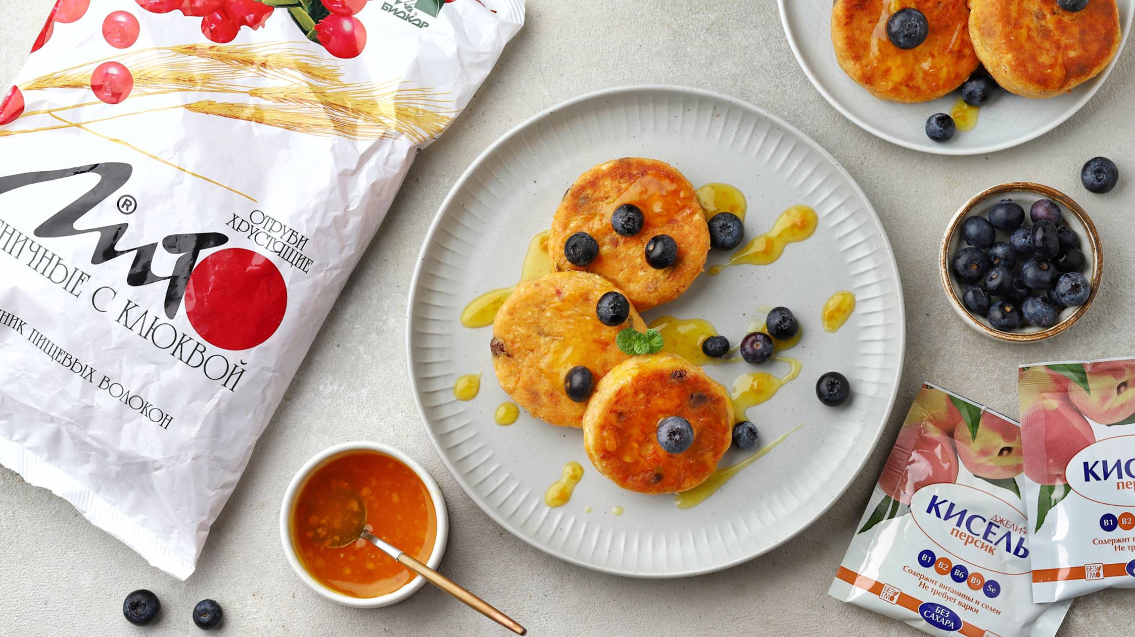 Морковные сырники с отрубями "Лито" и соусом из фруктового киселя "Джели+"