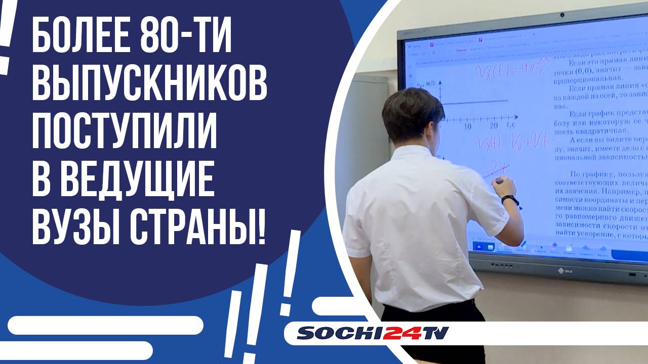 Гимназия №8 заняла первое место по количеству выпускников, поступивших в ведущие вузы России. Это более 80-ти учеников. #сочи24 #новости #сочи #новостисочи Телефон редакции: +7 (988) 235 10 20 (WhatsApp/Telegram) Почта: sochi24.tv@yandex.ru Сайт: https://sochi24.tv Одноклассники: https://ok.ru/sochi24 Яндекс Дзэн: https://zen.yandex.ru/sochi ВК: https://vk.com/sochi24tv Телеграм: https://t.me/sochi24tv Тик Ток: https://www.tiktok.com/@sochi24.tv