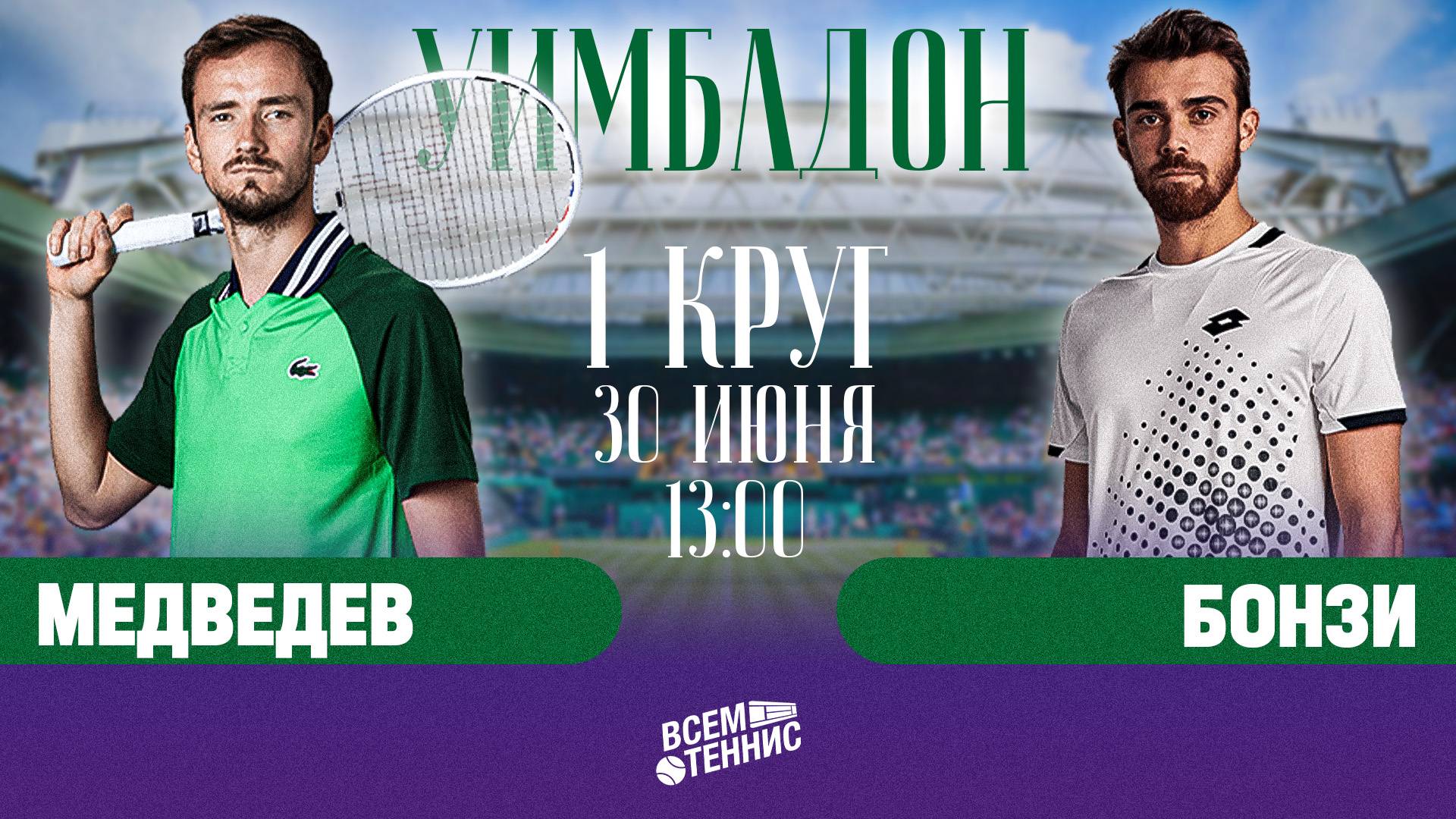30.06.2025 | 13:00 | Медведев – Бонзи | Уимблдон | Прямая трансляция