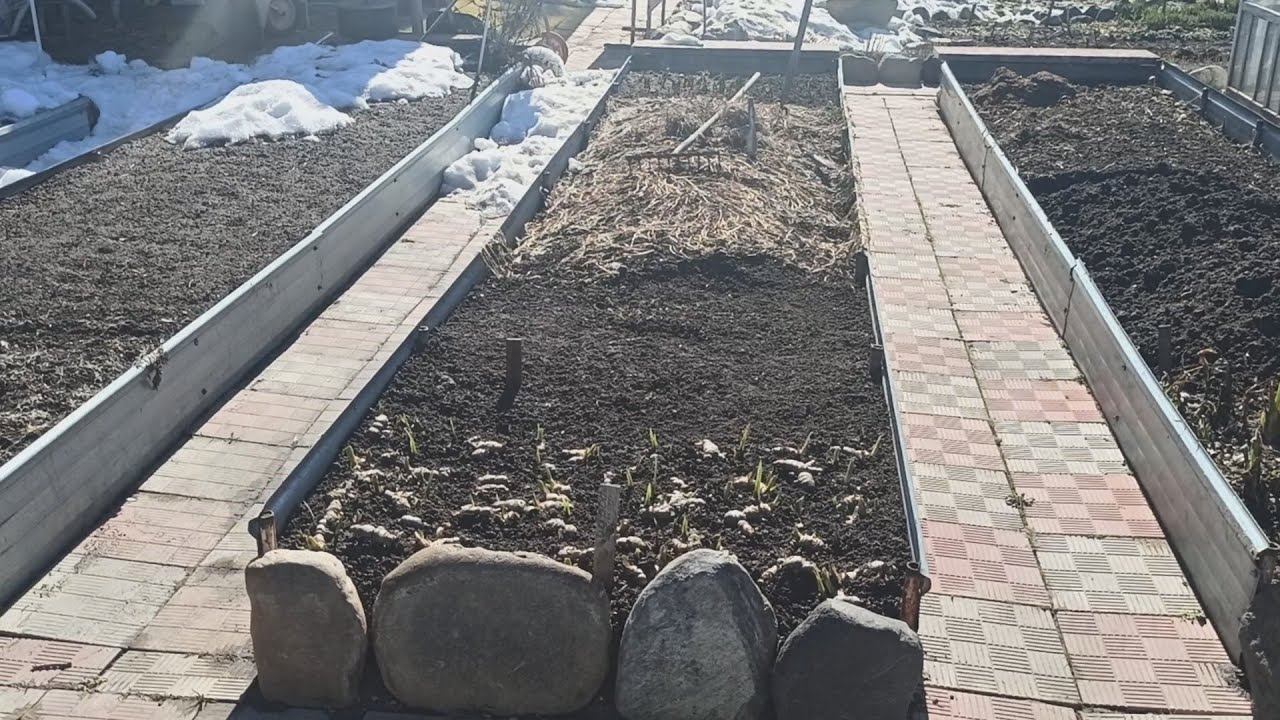 Грядки из профнастила весной.