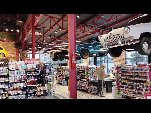 Дагестан. Махачкала. Магазин "Зелёное яблоко". Старые машины висят над кассой.