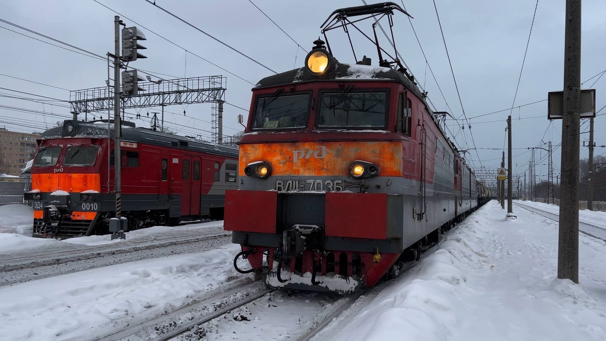 Электровоз-тройник постоянного тока ВЛ11.8 - 703Б / 655 (Приписан к депо ТЧЭ-27 Орёл-Сортировочный Московской железной дороги) с грузовым поездом. Спасибо бригаде за приветствие! Станция Орехово-Зуево Московской железной дороги. Российская Федерация, Московская область, город Орехово-Зуево. 22.I.2022 Подписывайтесь на мою группу в VКонтакте: https://vk.com/transporttamer Подписывайтесь на мой YouTube канал: https://youtube.com/@transporttamer Подписывайтесь на мой канал на Яндекс Дзене: https://dzen.ru/transportinhistory
