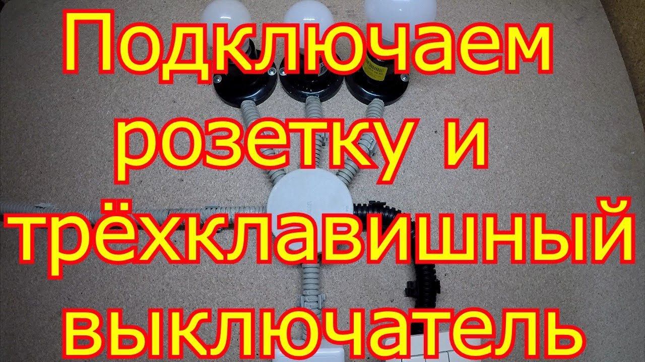 Как подключить розетку и трёхклавишный выключатель.