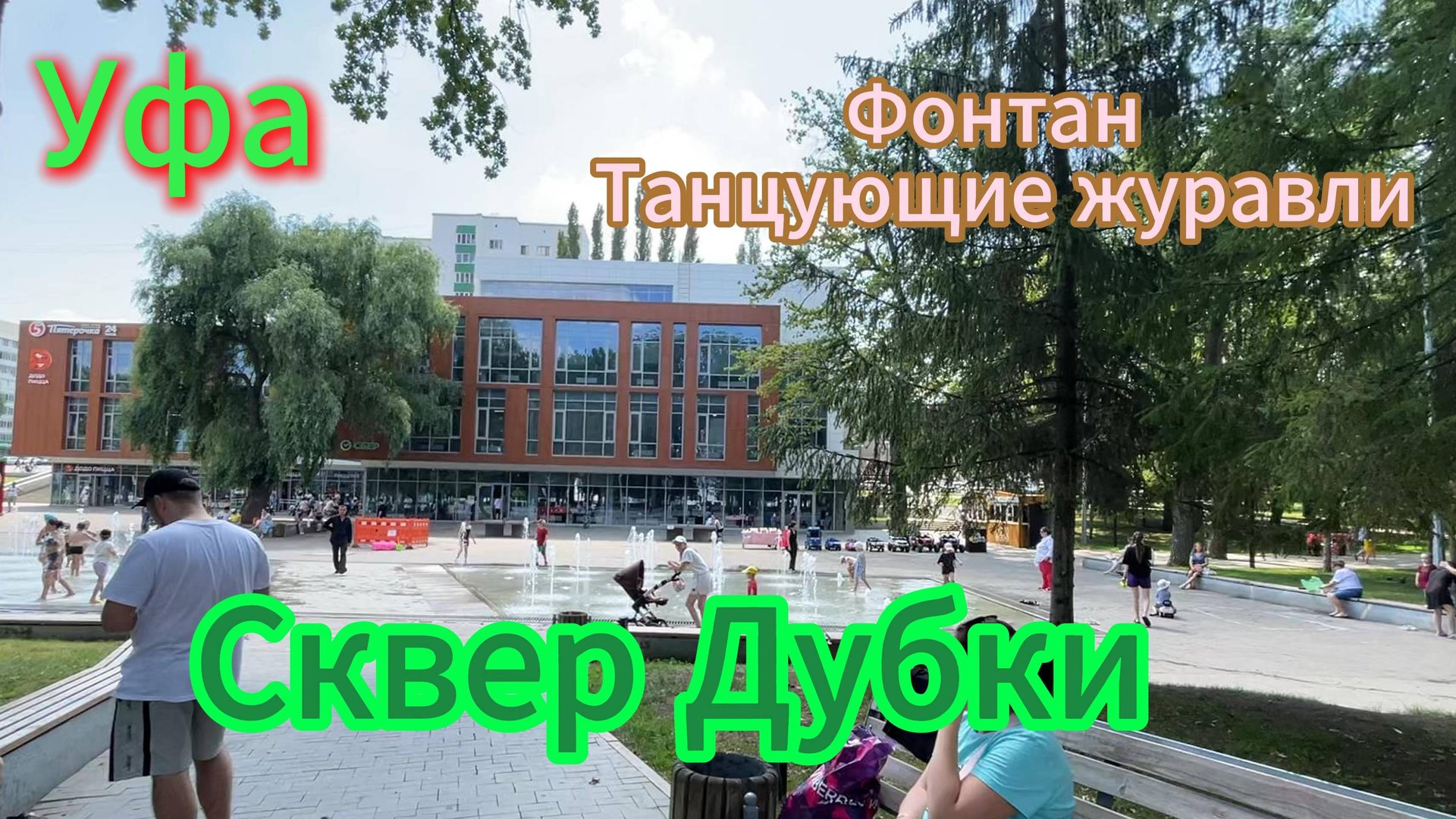 Уфа, сквер Дубки. Фонтан Танцующие журавли, прогулка в субботний день лета, 2024