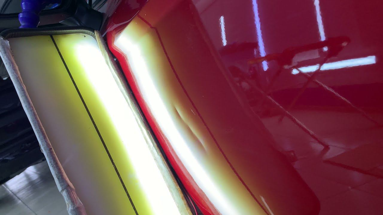 Toyota Camry на ремонте вмятины. Основной глубокий залом и две продавленные точки выпрямили. Глубокую царапину рядом с вмятиной слегка отполировали. https://vinylkazan.ru
