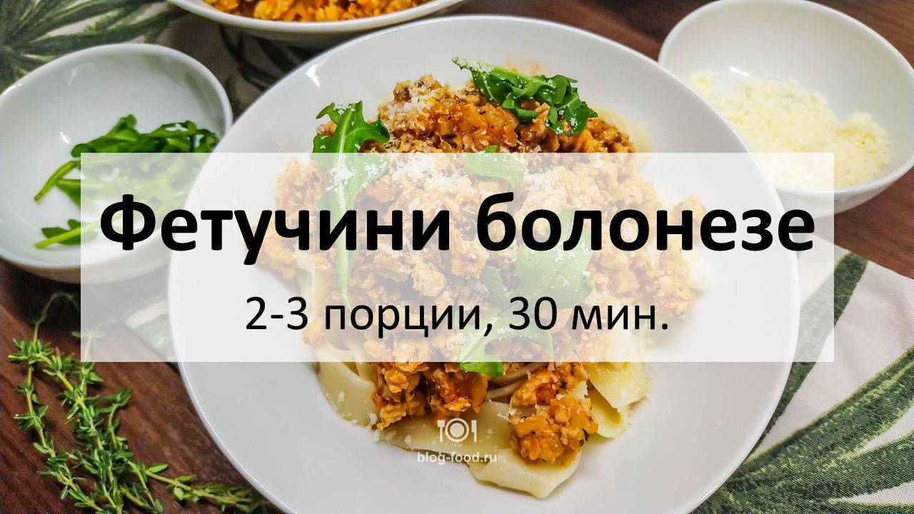 Всем привет. Сегодня у нас итальянское блюдо. Не совсем канонический вариант пасты с болонским рагу ( https://blog-food.ru/474 ), но довольно вкусный, а главное, более быстрый. В качестве мясной составляющей у нас тут фарш из индейки, но, естественно, можно взять любой — куриный, свиной, говяжий, бараний, да хоть из куропатки )). • Фарш из индейки, 300 гр. • Фетучини, 160 гр. • Томаты протёртые, 100 гр. • Лук, 1 шт. • Морковь, 50 гр. • Сельдерей, 30 гр. • Чеснок, 2 зубца • Итальянские травы (смесь), 1 ч. л. • Чёрный перец, растительное масло, соль Фетучини отвариваем в подсоленной воде в течение 10 минут, вливаем стакан холодной воды, снимаем с огня. Все овощи режем мелким кубиком, обжариваем на сильном огне три минуты. Добавляем фарш, разминаем, перемешиваем, добавляем томаты, 100 мл воды из-под пасты, итальянские травы, соль, перец по вкусу, тушим на маленьком огне под крышкой 15 минут. Подаём с какой-нибудь зеленью, присыпав пармезаном и т. д. Приятного аппетита! Текстовая версия на сайте: https://blog-food.ru/1283