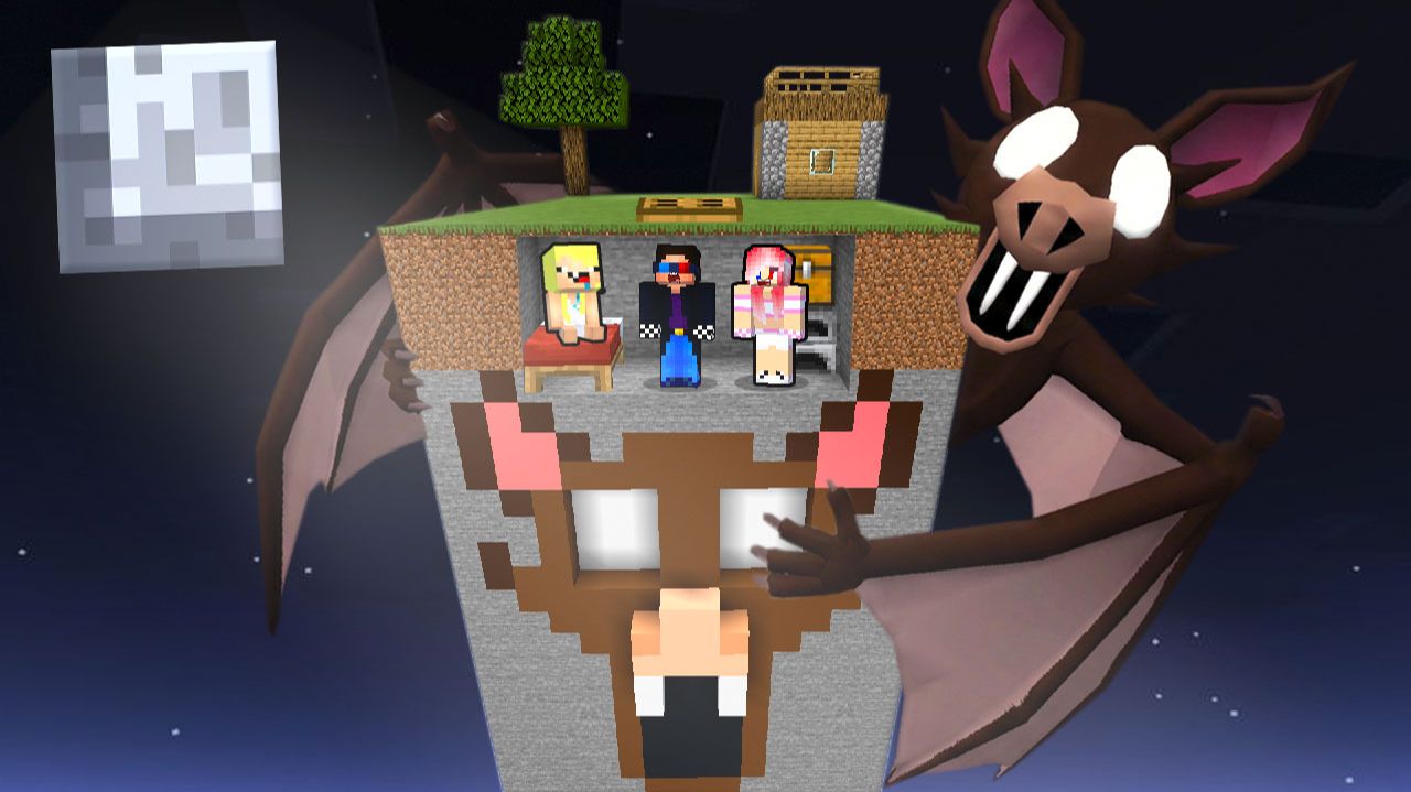 🦇ВЫЖИВАНИЕ НА ЧАНКЕ ЛЕТУЧЕЙ МЫШИ В МАЙНКРАФТ! ШЕДИ ЛЕСКА И НУБИК 99 НОЧЕЙ В ЛЕСУ MINECRAFT