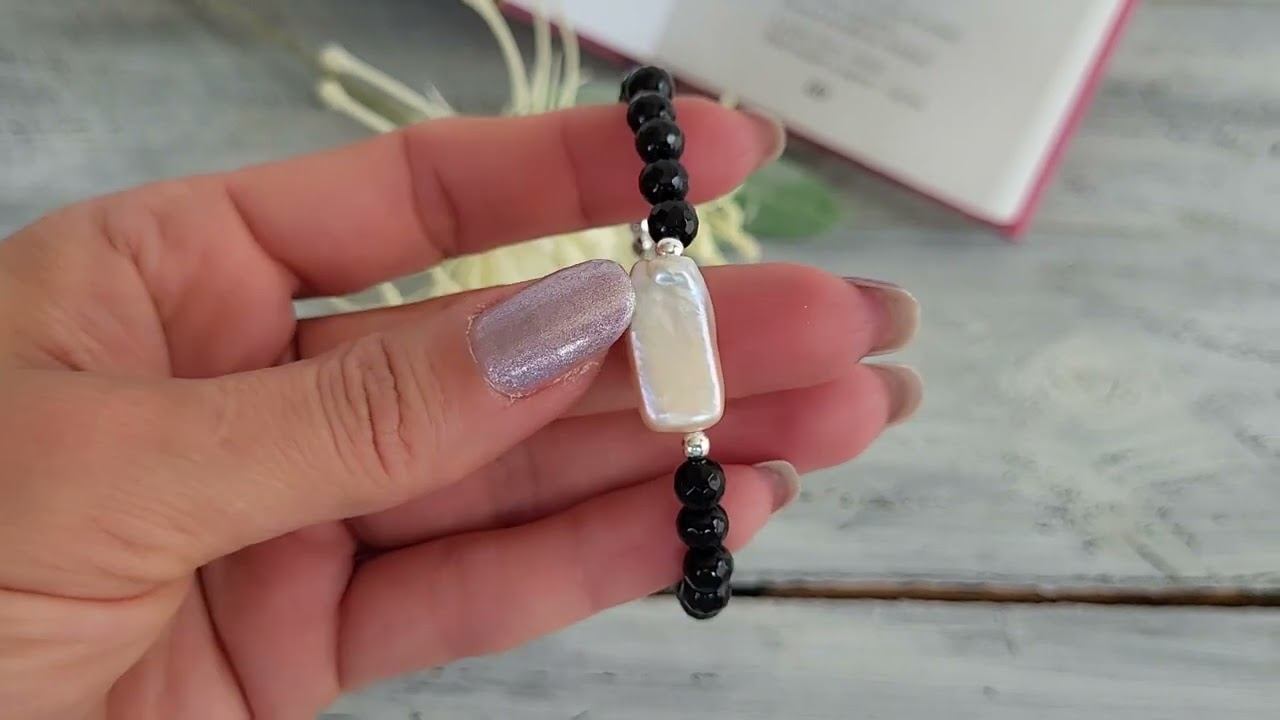 Браслет из агата черного, жемчуга барокко