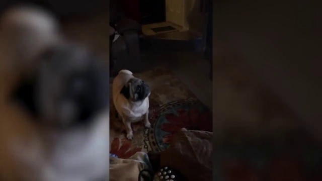 Забавный мопс боится людей в чёрном из фильма. #прикол #собака #мопс #реакция
