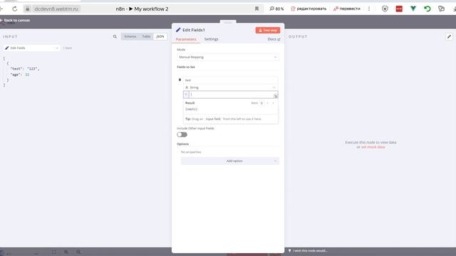 Элемент Edit Fields в n8n