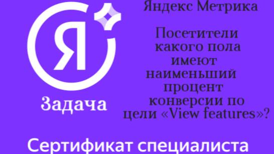 Сертификация специалистов по Яндекс.Метрика. Тест: Посетители какого пола имеют наименьший процент конверсии по цели «View features». При обнаружении ошибок пожалуйста оставьте комментарий.