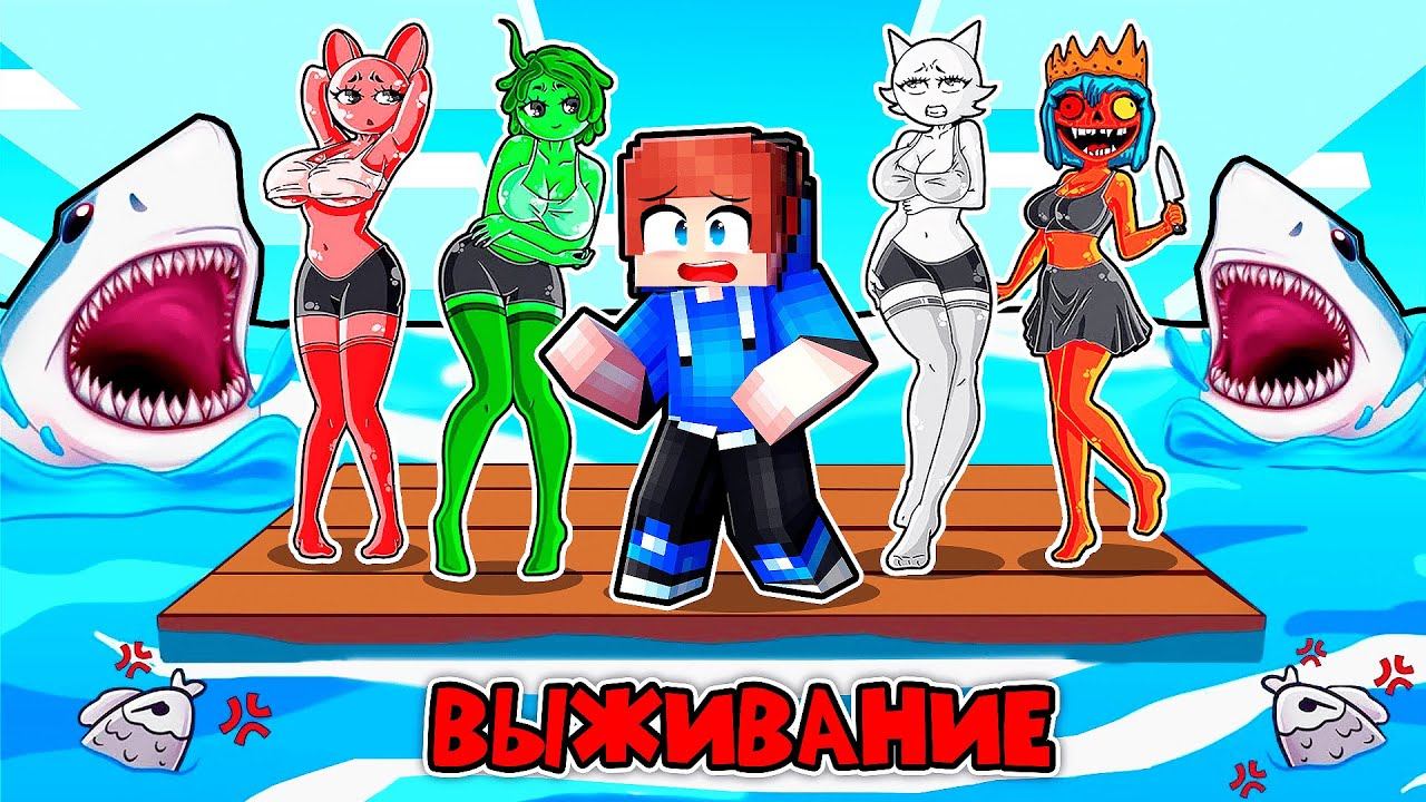 ЗАПЕРТ НА ОДНОМ ПЛОТУ СО СПРУНКИ ДЕВУШКАМИ В МАЙНКРАФТ! ВИТАЛЯ ХЬЮВИ