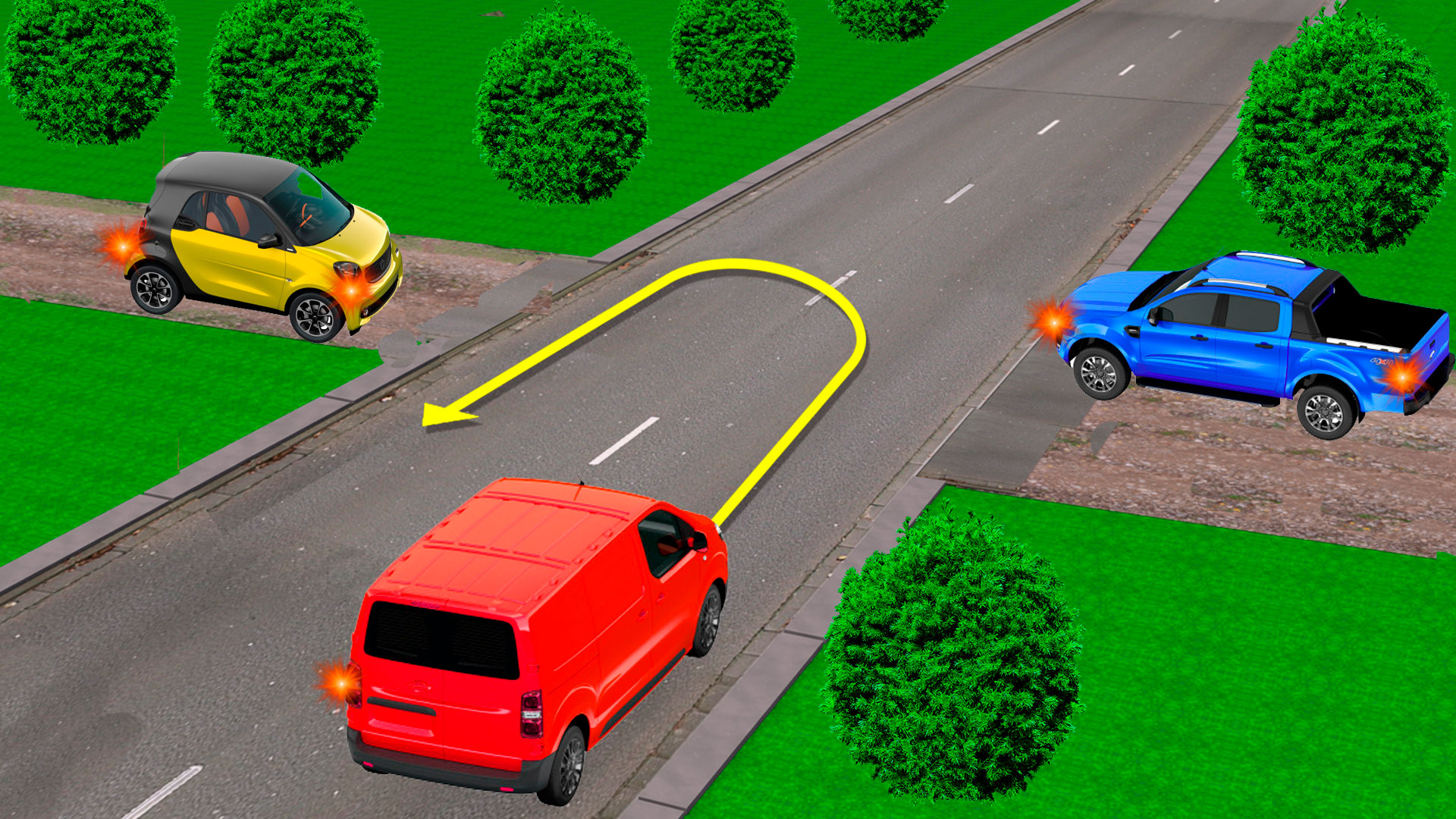 Как должен поступить водитель красного автомобиля в данной ситуации?
