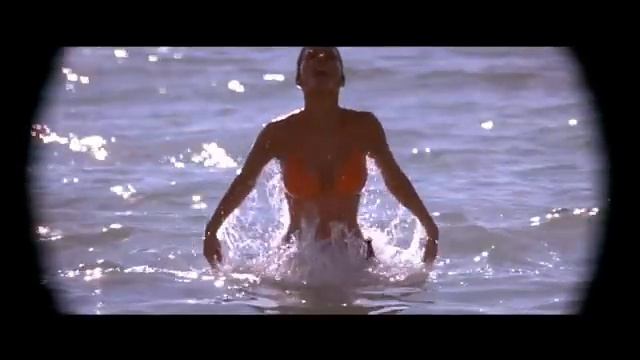 Девушка показывается из морской воды.
