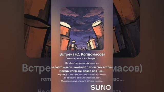 Романтика! Текст - С. Колдомасов Аудио и визуал - Suno AI Стихи: Сергей Колдомасов - "Встреча" (2018/09/14) (на сайте стихи.ру). Никакой вульгарщины или пропаганды, все совпадения чисто совпадения!