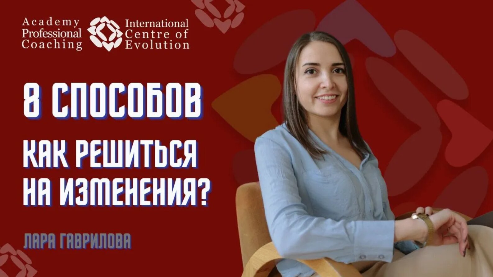 Узнать подробнее и записаться можно у менеджеров по ссылке ? https://clck.ru/33S5Tf 8 способов справиться с изменениями рассказала Лара Гаврилова @lara_gavrilova, Коуч-психолог, ссылка на канал https://www.youtube.com/channel/UC-ny4-FctardrPk71GmVxIg - как перестать сравнивать себя с другими? - как следовать своим ценностям? - как найти себе лучшего друга? Ответы на эти вопросы вы узнаете из этого видео ____________________________ Академия Профессионального Коучинга http://www.academy-coaching.com/ Мы в ВКонтакте https://vk.com/sorazvitieru Москва +7 (916) 957 10 00 Санкт-Петербург +7 (911) 957 11 77 info@sorazvitie.ru