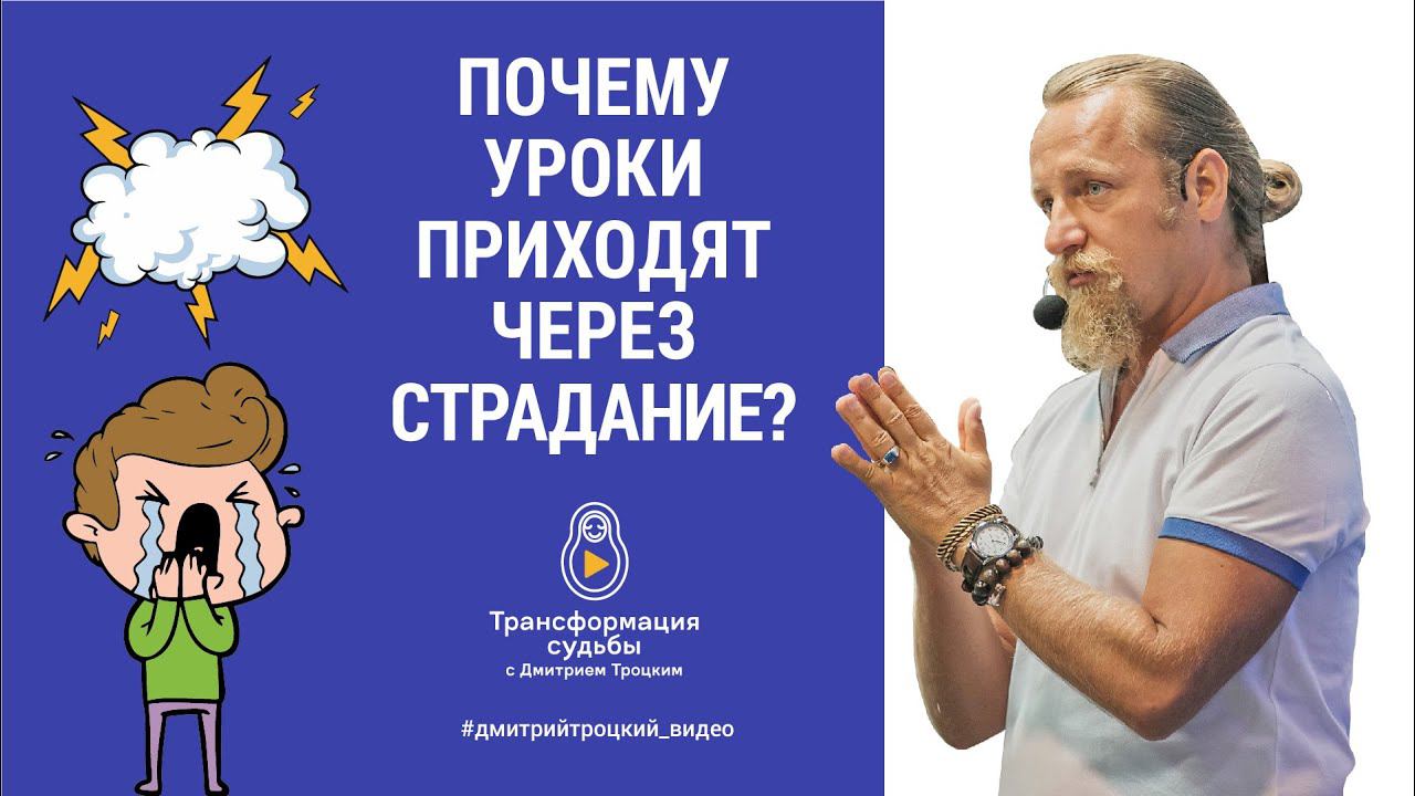 Изучайте законы жизни с нами в онлайн-клубе https://alhimik108.com/trainings/online/klub-matryeshka-sudby/ Тема сегодняшнего видео - ответ на вопрос: почему жизненные уроки приходят через страдания. Развиваться можно только через страдания — это распространенное выражение справедливо лишь отчасти. Да, страданий в жизни избежать действительно невозможно. Но можно или выбирать эти страдания осознанно (так сказать, выйти из зоны комфорта), или бессознательно проживать то, что происходит как бы само. Подробнее об этом Дмитрий рассказывает в видео. Дмитрий Троцкий в своих лекциях, тренингах и книге рассказывает, как изменение привычек и характера меняет судьбу. Опирается на древние системы знаний и опыт, который ему дали консультации в качестве хироманта (в прошлом) и наблюдение за людьми на тренингах. ________________________________________________________________________________ Официальный сайт Дмитрия Троцкого — http://alhimik108.com Клуб Дмитрия Троцкого - https://alhimik108.com/trainings/onli... Профиль Дмитрия Троцкого в Instagram — https://www.instagram.com/alhimik108/ Группа проекта «Трансформация Судьбы» ВКонтакте — https://vk.com/alhimik108 Группа проекта «Трансформация Судьбы» в Facebook — https://www.facebook.com/108alhimik ________________________________________________________________________________ Книга Дмитрия Троцкого «ПокаянеЯ» — http://alhimik108.com/book/ Расписание лекций и тренингов Дмитрия Троцкого — https://alhimik108.com/trainings/online/ #ДмитрийТроцкий#Ответынавопросы#Трансформациясудьбы
